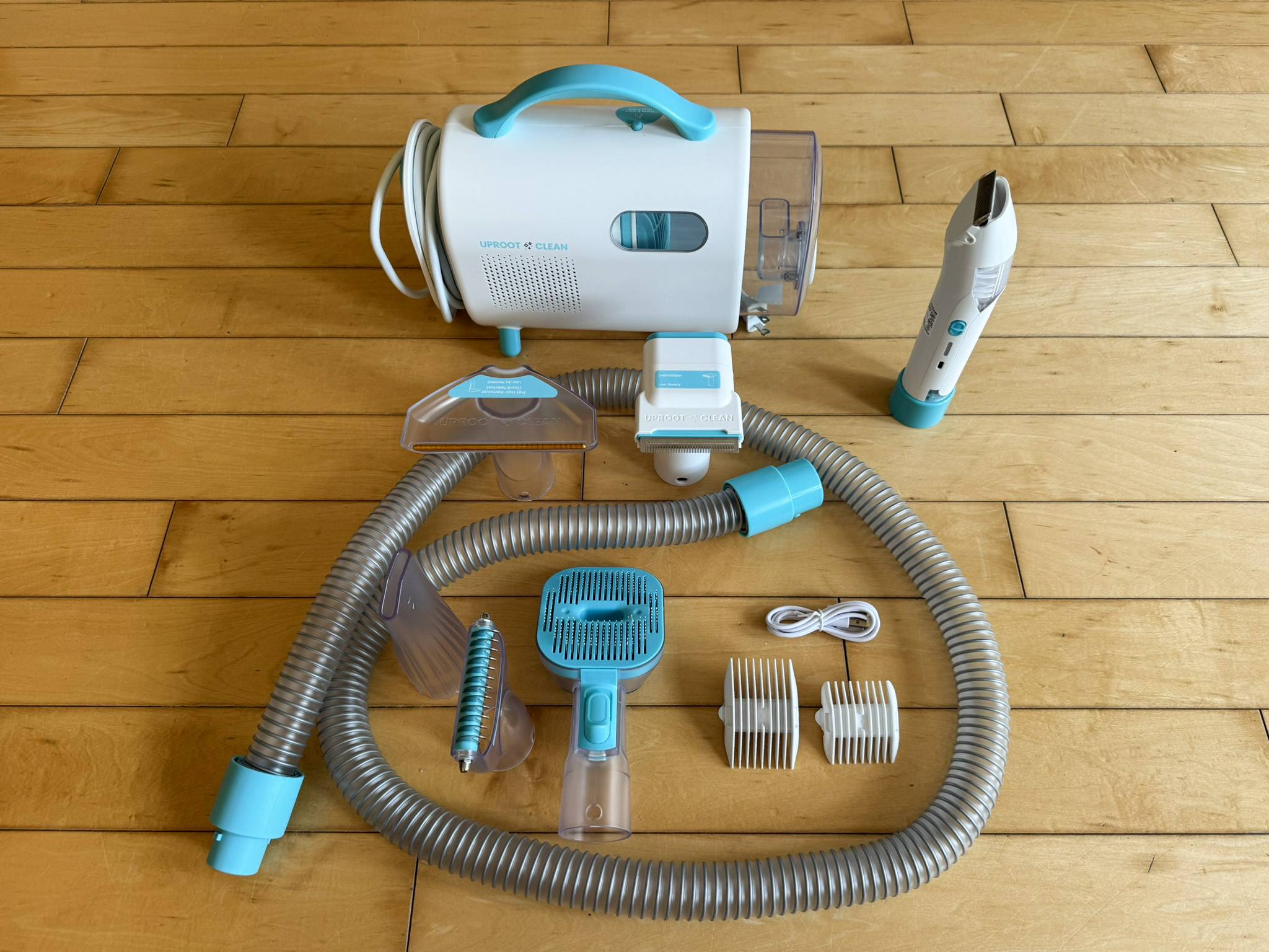 Bu noktada bakım süpürgeleri devreye giriyor. Uproot 7-in-1 bakım süpürgesi, fırçalama yaparken gevşek tüyleri ve deri pullarını doğrudan bir toplama kutusuna çeker.